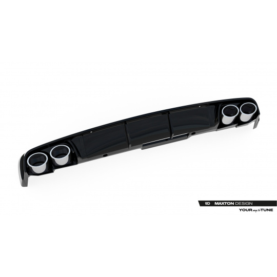Maxton Design vložka zadního nárazníku s imitacemi koncovek výfuku pro Audi A6 C8, černý lesklý plast ABS, chromové koncovky