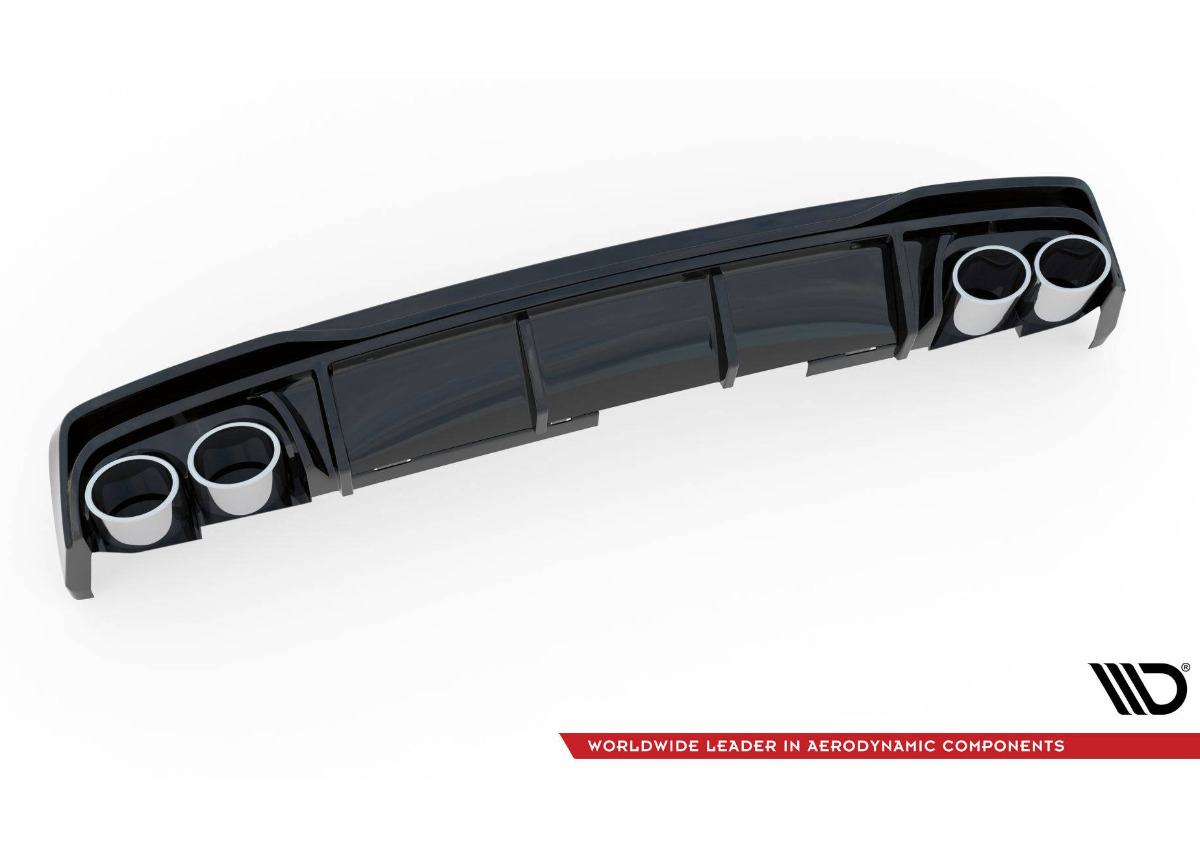 Maxton Design vložka zadního nárazníku s imitacemi koncovek výfuku pro Audi S6 C8, černý lesklý plast ABS, s chromovými koncovkami