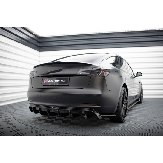 Maxton Design vložka zadního nárazníku ver.2 pro Tesla Model 3 Mk1, černý lesklý plast ABS