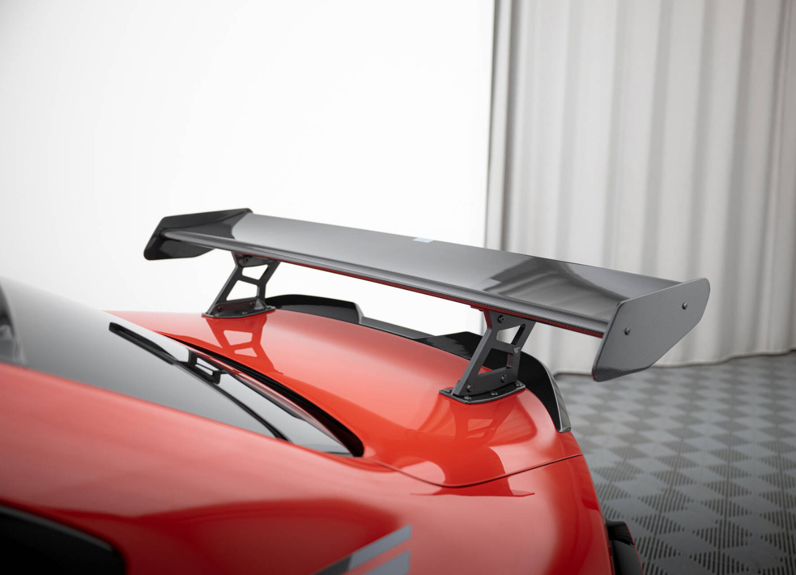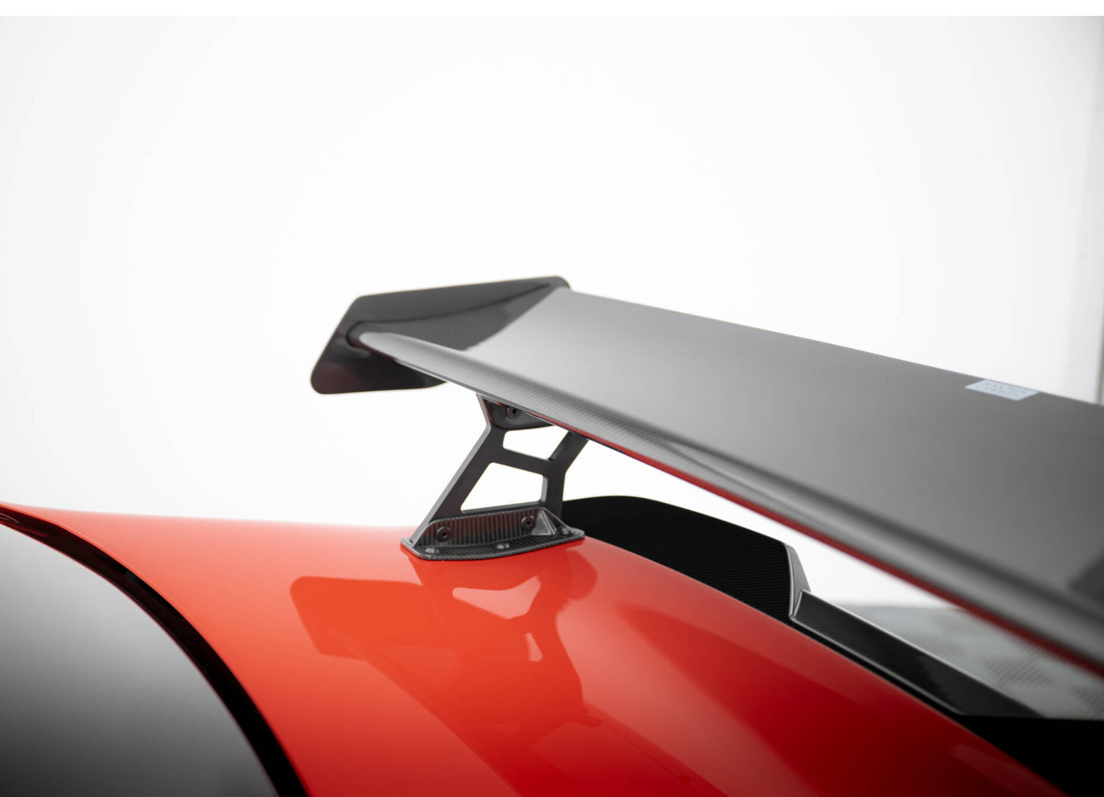 Výrazné křídlo na víko kufru upravuje proudění vzduchu kolem zadní části vozu a podstatně zvýrazňuje sportovní charakter vozu. Součástí balení je montážní materiál a stojny vyrobené z černě lakovaného hliníku.