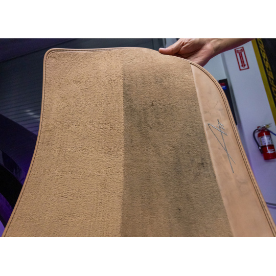 Silně znečištěná alcantara - Na znečištěný povrch nastříkejte velmi malé množství přípravku. Dbejte na to, aby povrch alcantary nenasákl. Jemným kartáčkem uvolněte nečistoty z alcantary a ty následně šetrně stírejte suchou, čistou mikrovláknovou utěrkou a povrch zcela osušte.