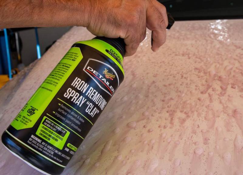 Meguiar's Iron Removing Spray Clay obsahuje příměsi, které při kontaktu s nečistotami na bázi železa (Fe) zbarví přípravek do ruda. Tento efekt není důkazem čisticího účinku produktu, ale pouze indikátorem, zda nečistoty na povrchu obsahují železo. Pokud jsou povrchy silně znečištěny, avšak bez obsahu železitých nečistot, přípravek se nezbarví, ale stále bude stejně výborně čistit povrch od všech zbytků nečistot.