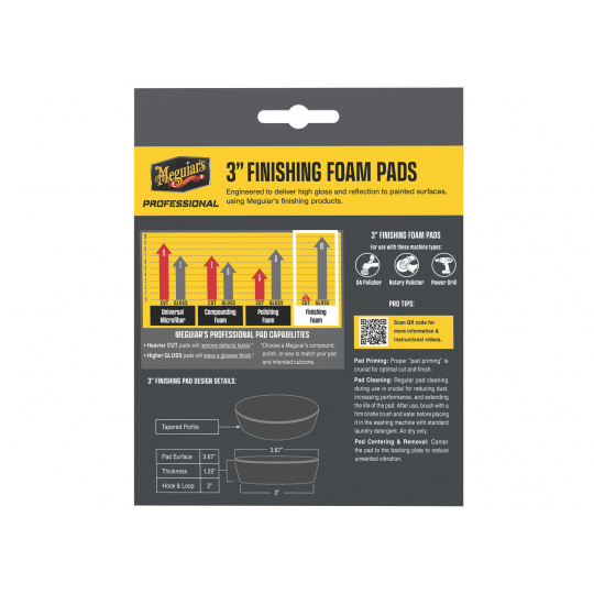 Tyto profesionální pěnové kotouče jsou vhodné pro použití s rotačními i orbitálními leštičkami na aplikaci vosků a sealantů. Meguiar's Professional Polishing Foam Pad je dostupný v různých velikostech (3", 5" a 6"), takže si můžete zvolit ideální variantu pro detailní i rozsáhlejší práci.