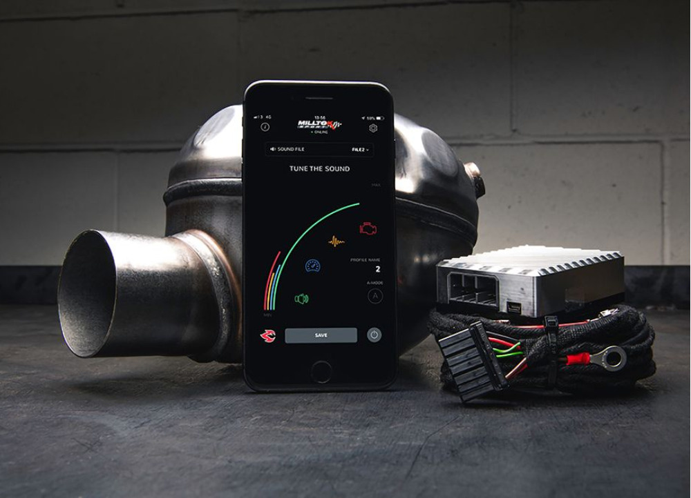 - Pokročilý software: Moderní aplikace Milltek pro chytré telefony umožňuje kompletní přizpůsobení zvuku při startu i během jízdy (hlasitost, výška tónu, uživatelské profily).