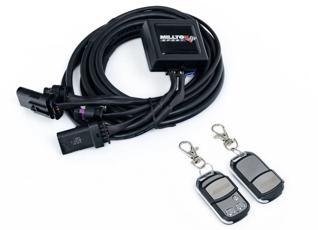 Milltek Sport Active Valve Controller (Remote Control – Plug & Play verze) představuje komfortní způsob, jak ovládnout zvukový projev vašeho vozu pomocí dedikovaného dálkového ovladače. Tento systém je určen pro vozidla vybavená aktivními výfukovými klapkami a umožňuje jejich otevírání či zavírání nezávisle na továrním nastavení jízdních režimů, čímž vám dává plnou svobodu nad akustikou motoru.
