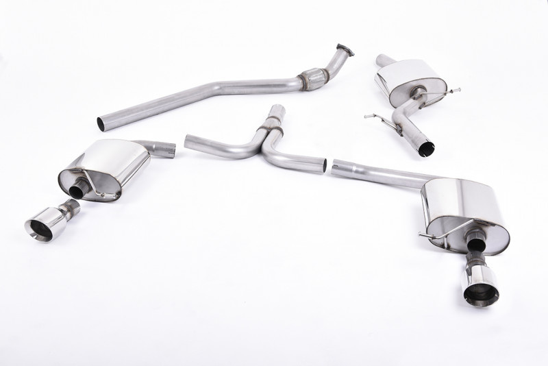 Milltek Sport homologovaný výfuk cat-back Dual-outlet pro Audi A4 2.0 TFSI S-line B8 (2WD a quattro manual) Sedan/Avant 2008-2011, typ koncovek: GT-100 leštěné