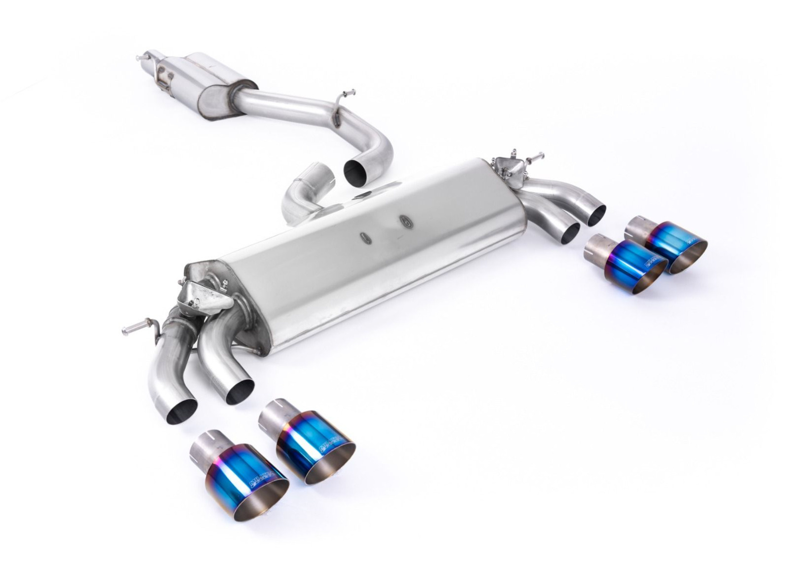 Milltek Sport homologovaný výfuk cat-back GPF Back - s rezonátorem pro Audi S3 2.0 TFSI quattro 3-dvéř. 8V.2 (s GPF) 2019-2020, dvojité, kulaté, typ koncovek: GT-100 titanové modré