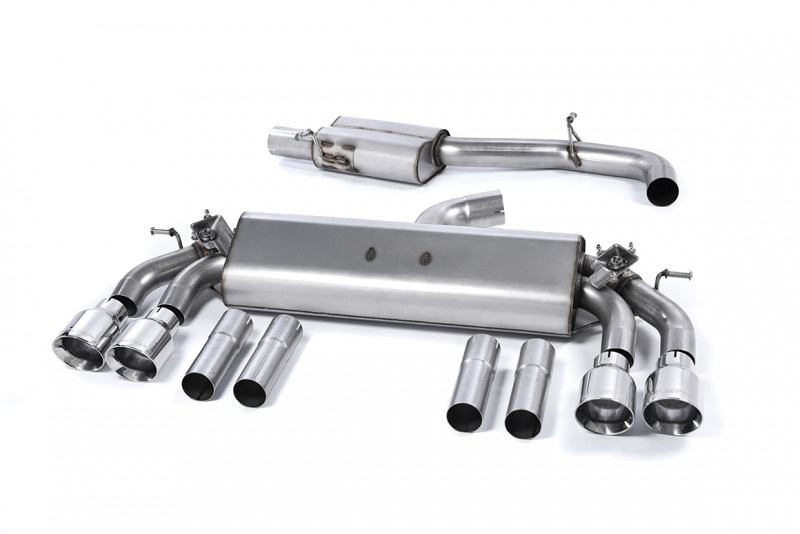 Milltek Sport homologovaný výfuk cat-back GPF Back s rezonátorem pro Audi S3 2.0 TFSI quattro Sedan/Cabrio 8V.2 (s GPF) 2019-2020, dvojité, kulaté, leštěné koncovky