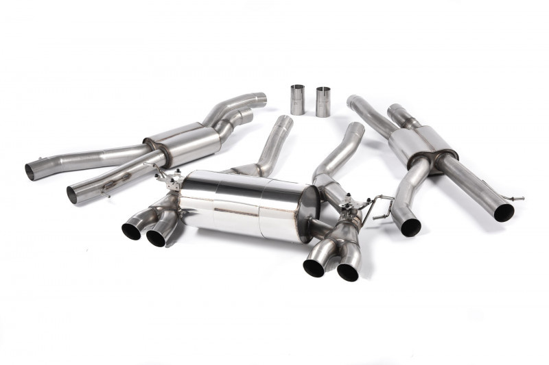 Milltek Sport homologovaný výfuk cat-back GPF/OPF Back - Road pro BMW řada 3 F80 M3, M3 Competition, M3 CS Sedan (s OPF/GPF) 2019-2020, GT-90 titanově modré koncovky
