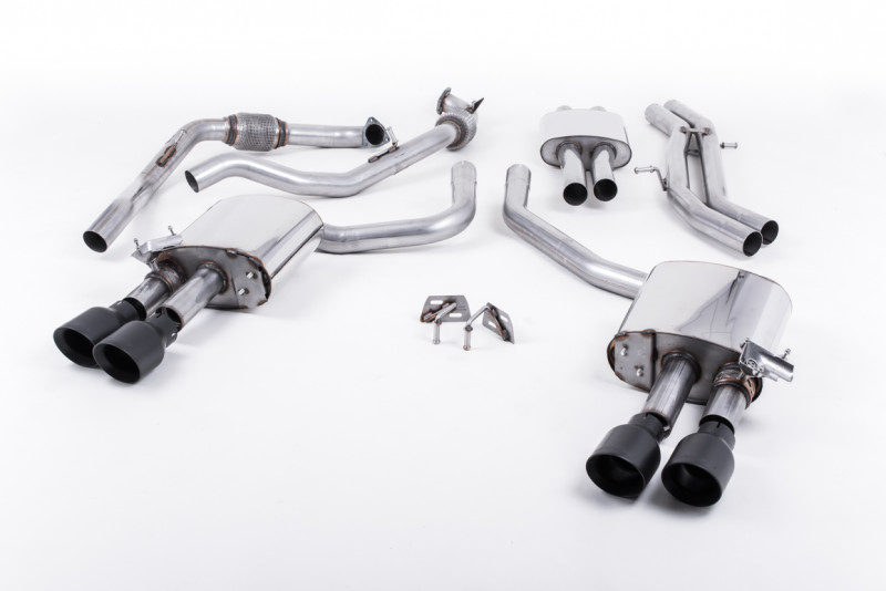Milltek Sport homologovaný výfuk cat-back s rezonátorem pro Audi S4 3.0 Turbo V6 B9 - Sedan/Avant (se Sport Diff, Without Brace Bars) 2016-2024, typ koncovek: GT-100 černé