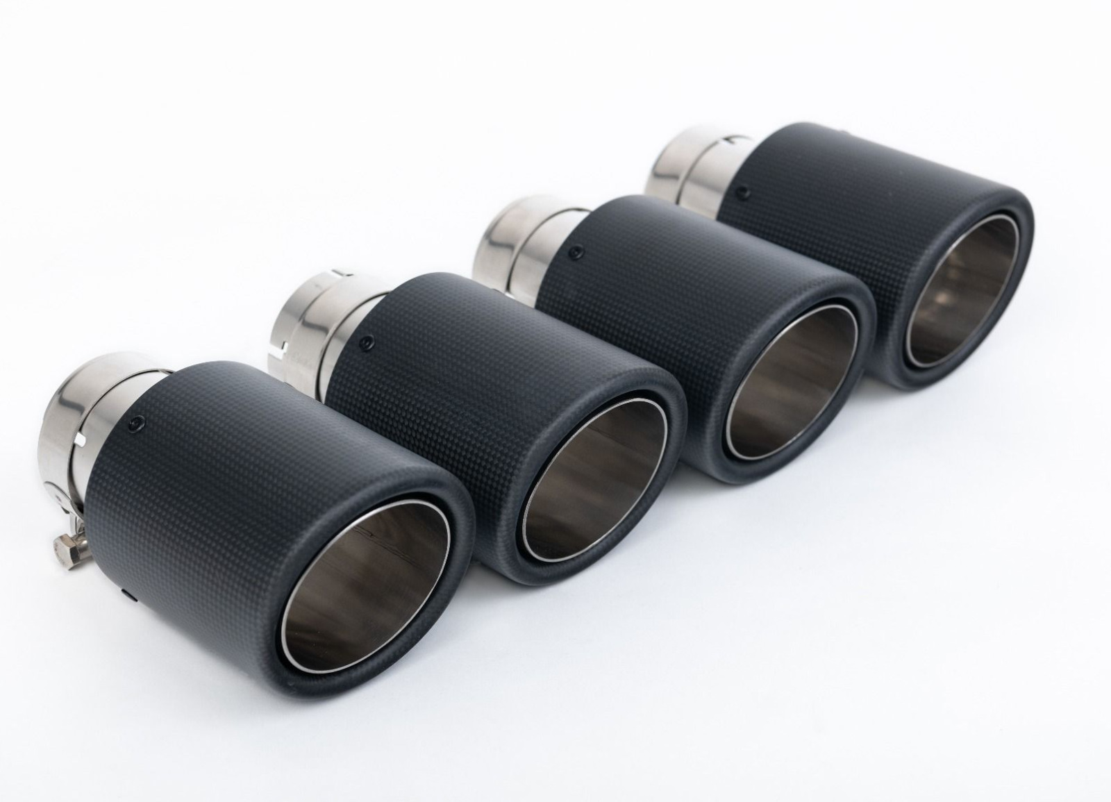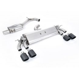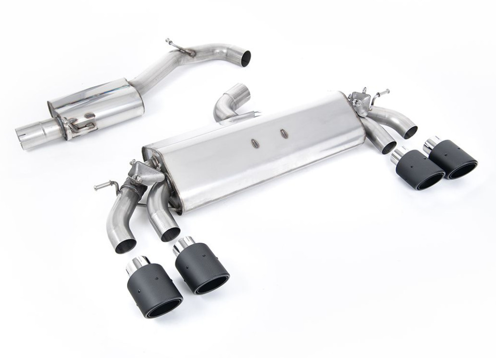 Milltek Sport homologovaný výfuk cat-back s rezonátorem (tišší) pro Volkswagen Golf Mk7.5 R 2.0 TSI 310PS (bez GPF) - 76mm, EC Approved Systems 2017-2021, typ koncovek: JET-100 karbonové