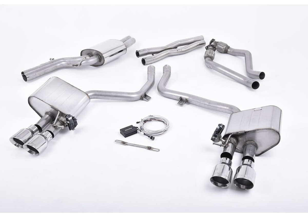 Milltek sport ValveSonic výfukový systém cat-back Electronic Valved System pro Audi S4 3.0 Supercharged V6 B8.5 2012-2016, typ koncovek: GT-100 leštěné