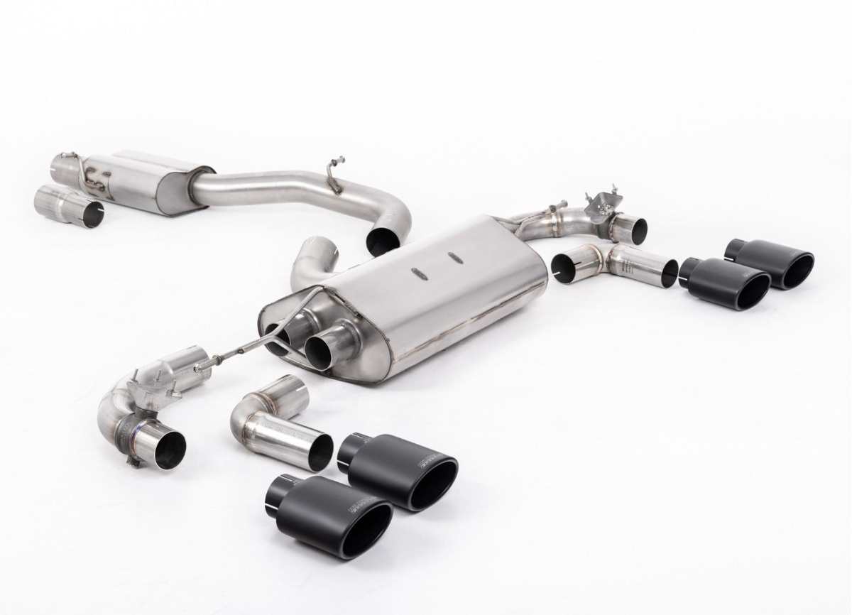 Milltek Sport výfukový systém cat-back 80mm / 3.15" Race s klapkami - s rezonátorem pro Volkswagen Golf Mk7.5 R 2.0 TSI 310PS (bez GPF) - 80mm Race Systems 2017-2021, typ koncovek: oválné černé