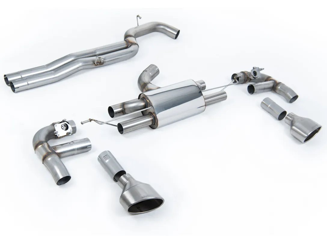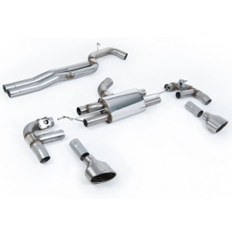 Milltek Sport výfukový systém cat-back 80mm Race bez rezonátoru (nejhlasitější) pro Audi RS3 Sedan 400PS (8V MQB) - bez OPF/GPF 2017-2024, titanové koncovky