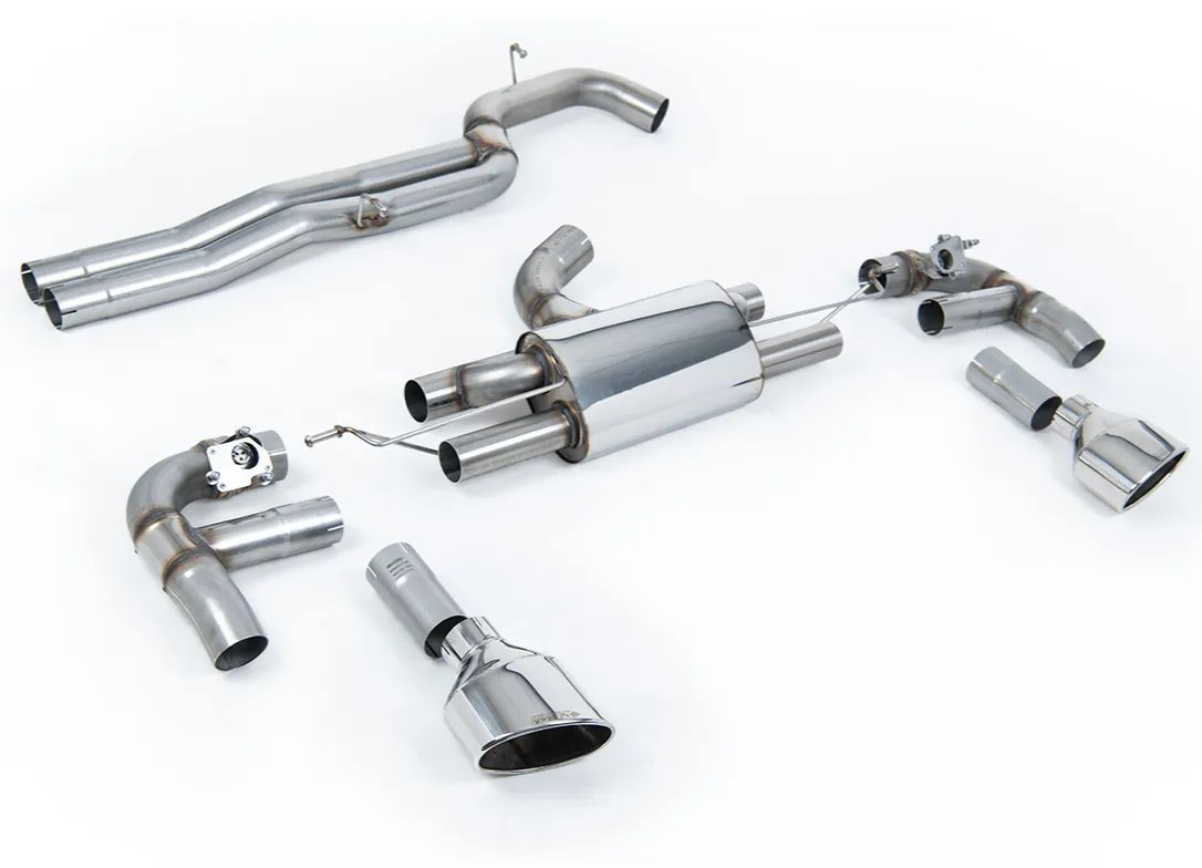 Milltek Sport výfukový systém cat-back 80mm Race bez rezonátoru (nejhlasitější) pro Audi RS3 Sedan 400PS (8V MQB) - s OPF/GPF 2019-2024, leštěné koncovky