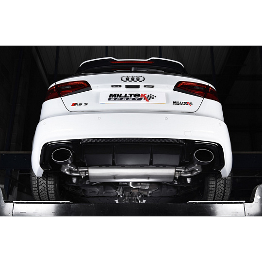 Milltek Sport výfukový systém cat-back bez rezonátoru a klapek (hlasitější) pro Audi RS3 Sportback (8V MQB - předfacelift) 2015-2017, typ koncovek: oválné leštěné