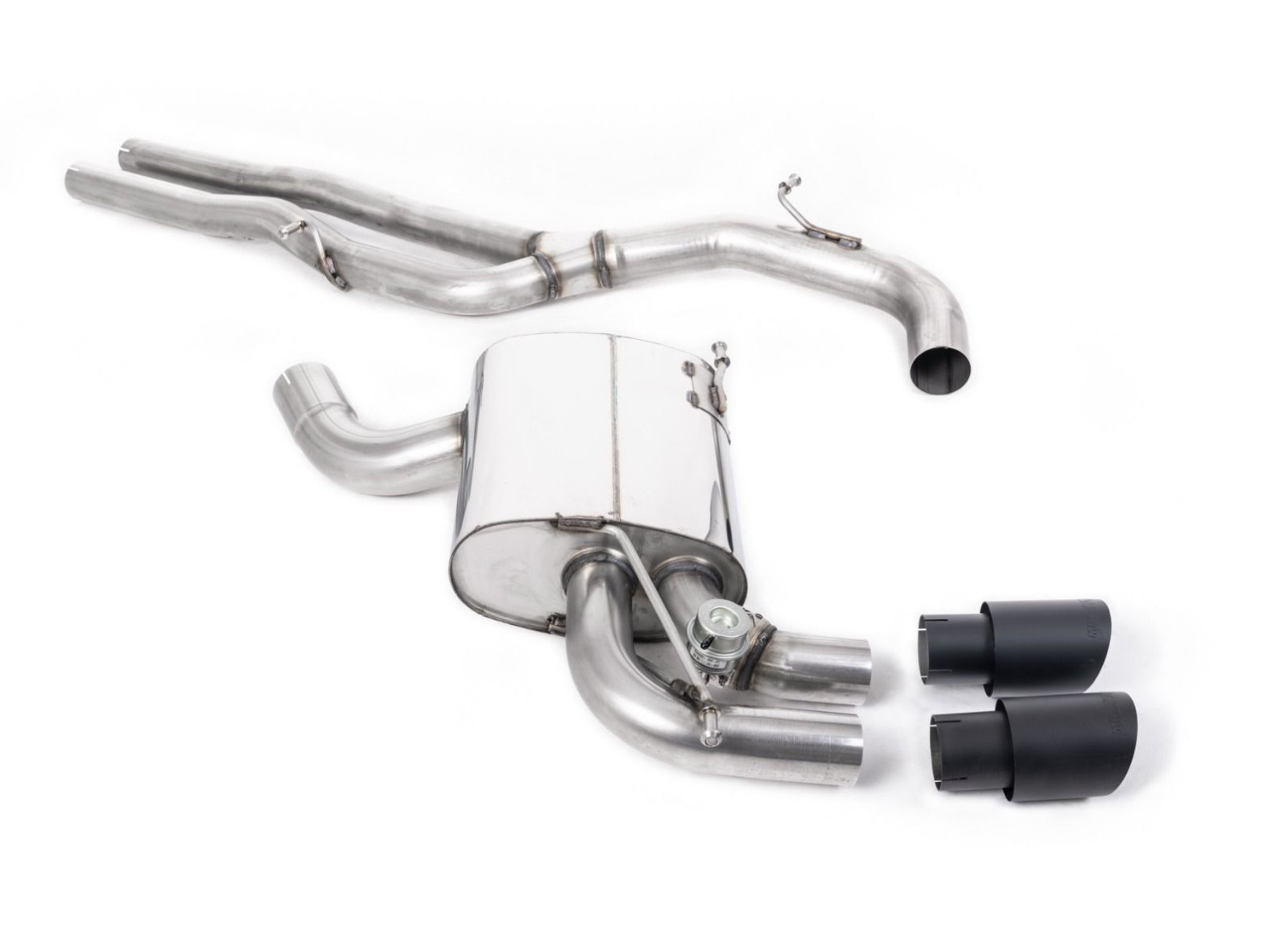Milltek Sport výfukový systém cat-back bez rezonátoru (hlasitější). Integrovaná podtlaková klapka výfuku. pro Audi RS3 Sportback S tronic (8P) 2011-2012, typ koncovek: černé