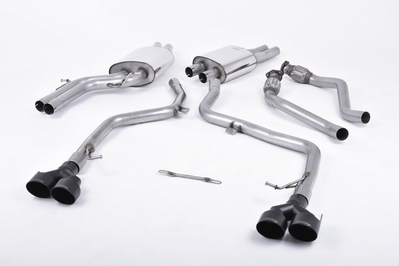 Milltek Sport výfukový systém cat-back bez rezonátoru (hlasitější) pro Audi S5 3.0 TFSI B8.5 Coupe/Cabriolet 2011-2016, typ koncovek: GT-100B černé
