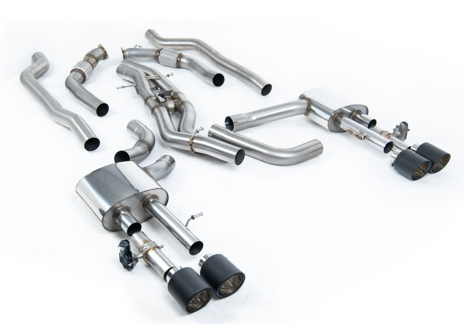 Milltek Sport výfukový systém cat-back bez rezonátoru (hlasitější) Twin 80mm pro Audi S8 D5 4.0 TFSI V8 Sedan (bez OPF/GPF US/ROW) 2020-2024, typ koncovek: JET-115 karbonové