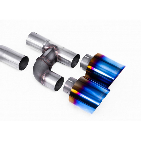 Milltek Sport výfukový systém cat-back Golf R Style - Race (nejhlasitější) pro Volkswagen Golf Mk8 GTi (Golf R Style Quad Outlet Systems - 245ps bez GPF / North American modely) 2021-2024, typ koncovek: GT-115 titanově modré