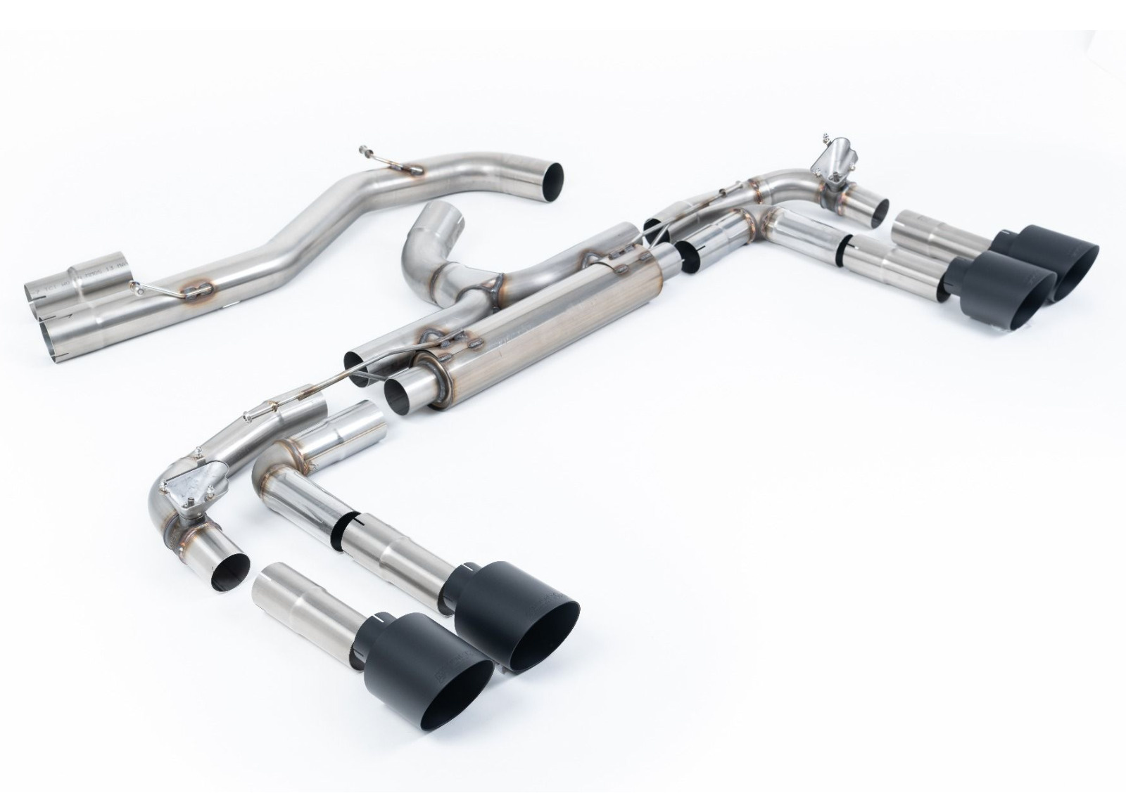 Milltek Sport výfukový systém cat-back Race System - 80mm bez rezonátoru (nejhlasitější) pro Audi S3 2.0TFSI Quattro Sedan 310PS 8Y (NA / bez OPF) 2022-2024, typ koncovek: GT-115 černé