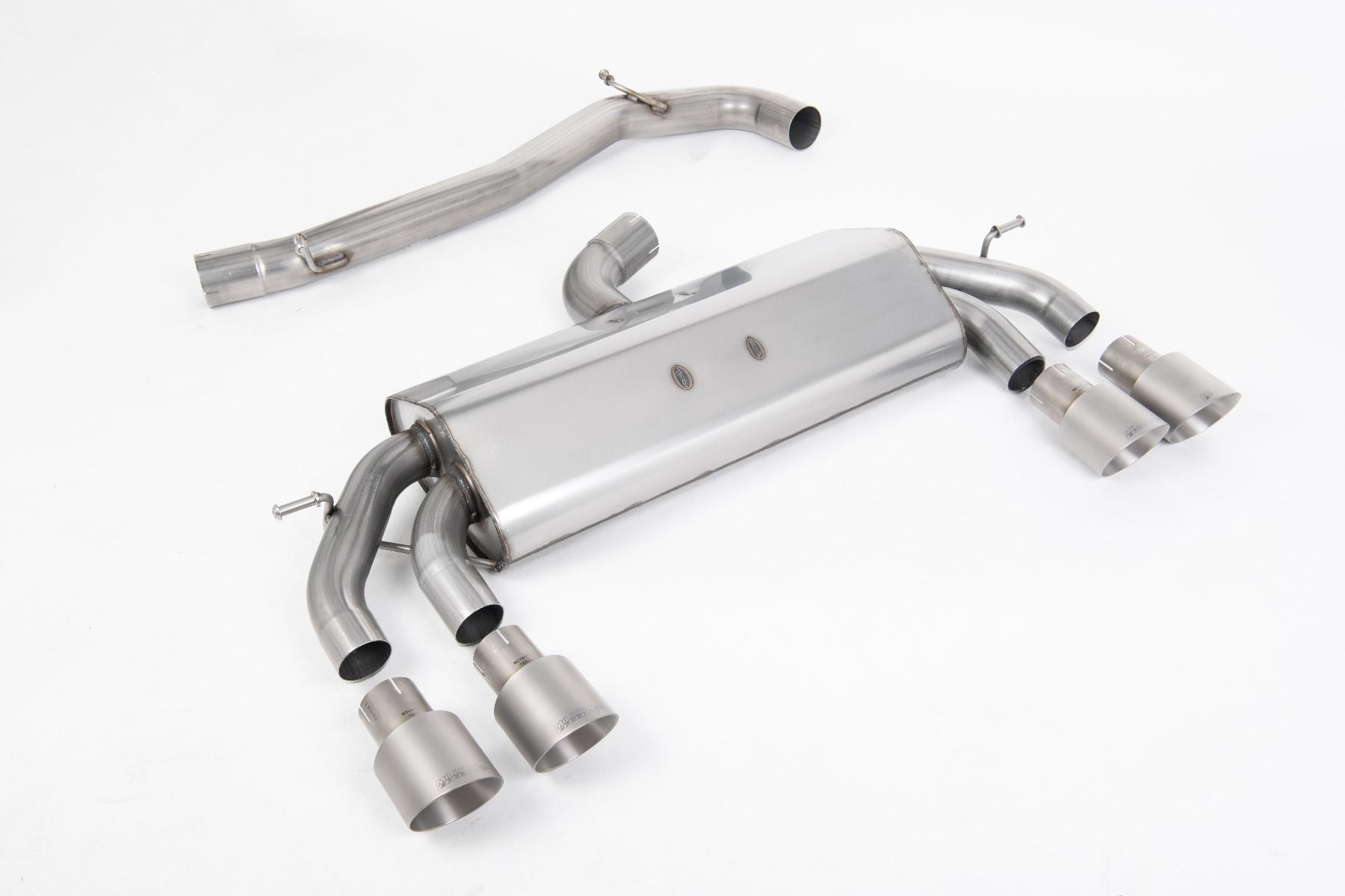 Milltek Sport výfukový systém cat-back Race systém bez rezonátoru a klapek (hlasitější) pro Volkswagen Golf Mk7.5 R 2.0 TSI 310PS (bez GPF) - 76mm, EC schválení 2017-2021, typ koncovek: GT-100 titanové