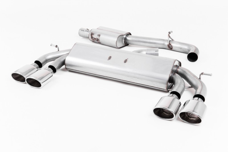 Milltek Sport výfukový systém cat-back Race system s rezonátorem (tišší) bez klapek pro Volkswagen Golf Mk7.5 R 2.0 TSI 310PS (bez GPF) - 76mm, EC Approved Systems 2017-2021, typ koncovek: oválné leštěné