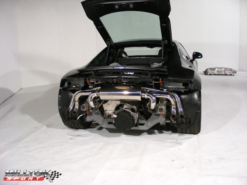 Milltek Sport výfukový systém cat-back Odstraňuje sekundární katalyzátory - bez rezonátoru (hlasitější) pro Audi R8 V8 4.2 FSI quattro 2007-2012, využívá originálních koncovek