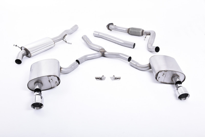 Milltek Sport výfukový systém cat-back Road+ s rezonátorem pro Audi A4 2.0 TFSI B9 Quattro Sedan/Avant (bez OPF/GPF Models, Without Brace Bars) 2016-2024, typ koncovek: GT-100 leštěné