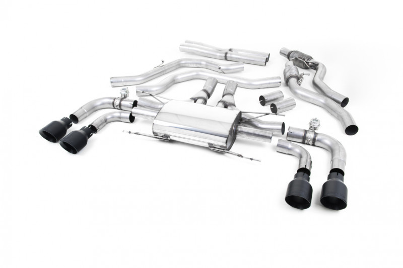 Milltek Sport výfukový systém cat-back s klapkami pro Alfa Romeo Giulia Quadrifoglio 2.9 V6 Bi-Turbo (bez OPF/GPF) 2017-2024, typ koncovek: GT-100 černé