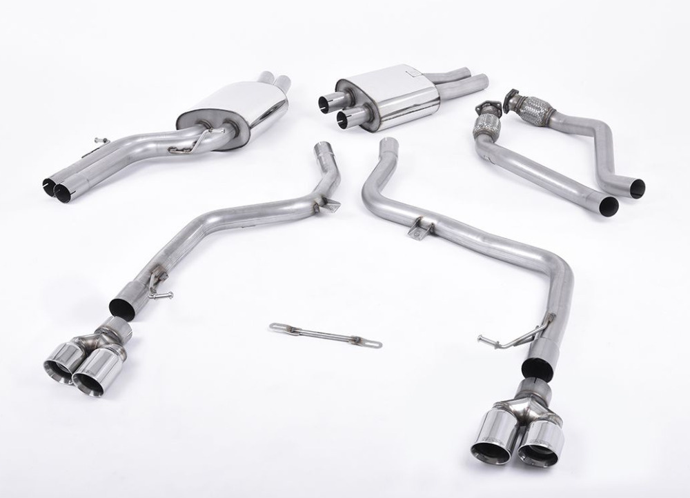 Milltek Sport výfukový systém cat-back Závodní verze (nedoporučuje se pro silniční provoz) pro Audi S5 3.0 TFSI B8 Coupe/Cabriolet (S tronic) 2009-2011, typ koncovek: dvojité leštěné