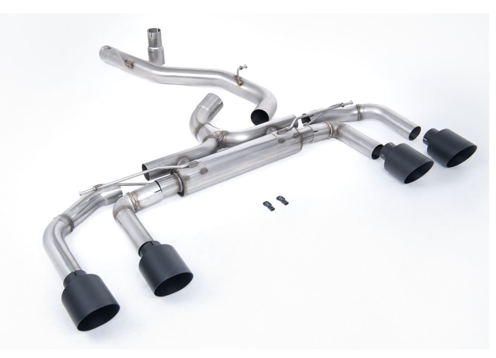 Milltek Sport výfukový systém GPF-Back 80mm / 3.15" Race bez klapek (nejhlasitější) pro Volkswagen Golf Mk8 R 2.0 TSI 320PS (s GPF) 2021-2024, typ koncovek: GT-115 černé