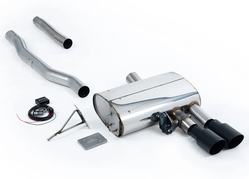Milltek Sport výfukový systém GPF-Back s klapkami pro Mini Mk3 (F56) Mini Cooper S 2.0 Turbo (UK/EU) Facelift s GPF/OPF 2019-2024, GT-90 černé koncovky