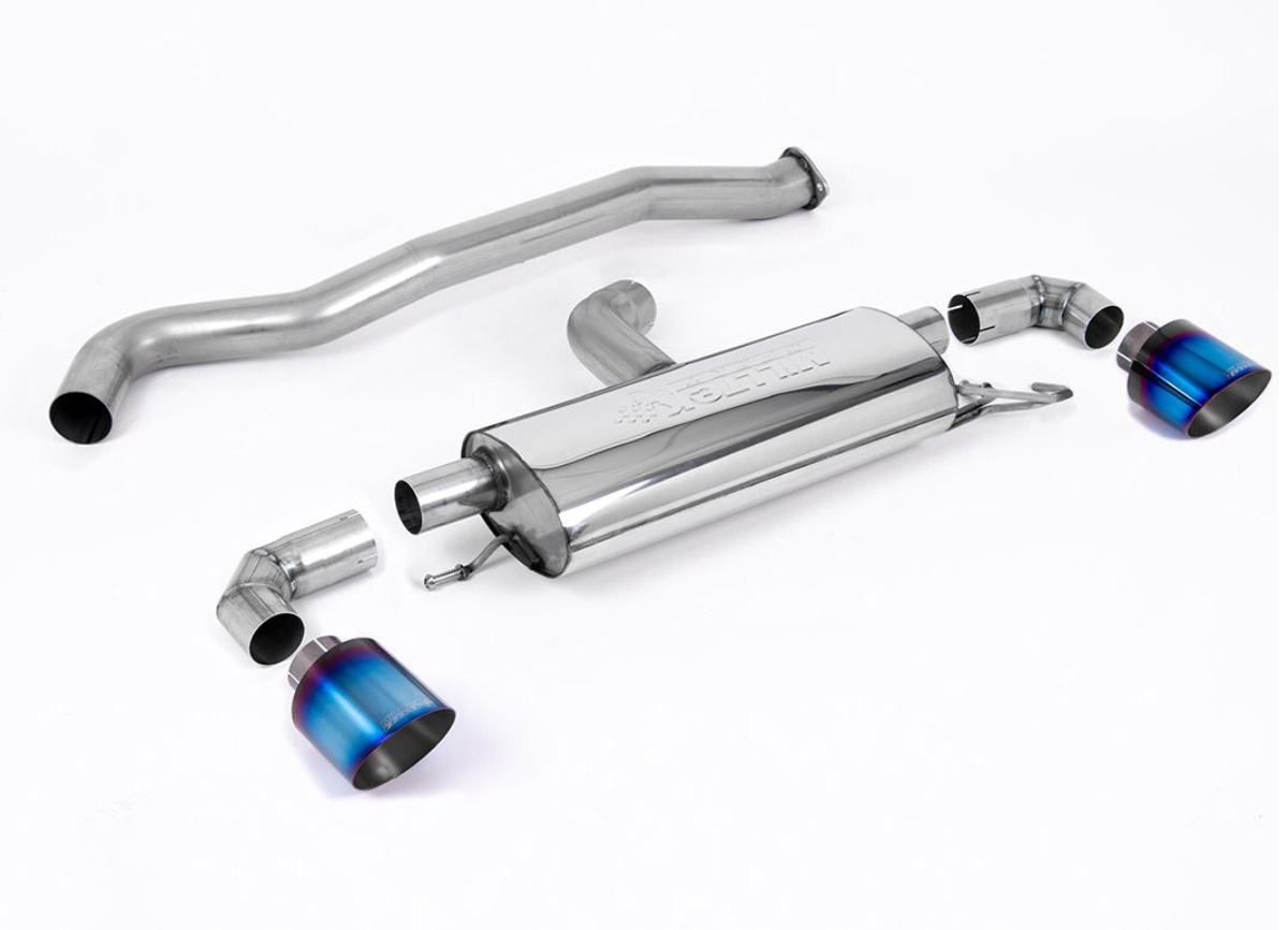 Milltek Sport výfukový systém OPF/GPF Back 3" / 76mm bez rezonátoru (hlasitější) pro Toyota Yaris Gen1 GR/GR Circuit Pack 1.6T (s OPF/GPF) 2020-2024, typ koncovek: GT-115 titanové modré