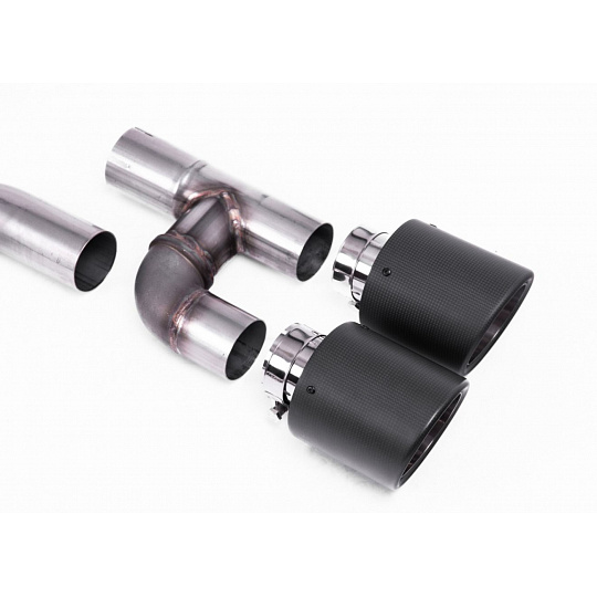 Milltek Sport výfukový systém OPF/GPF Back Golf R Style - Road+ pro Volkswagen Golf Mk8 GTi (Golf R Style Quad Outlet - 245ps s OPF/GPF) 2020-2024, typ koncovek: JET-115 karbonové