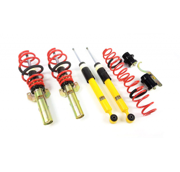 Polský výrobce MTS Technik přináší na trh produkty s vynikajícím poměrem cena / kvalita. Precizní provedení se vyznačuje antikorozní povrchovou úpravou galvanickým žlutým zinkem, černě eloxovanými komponenty a červenými pružinami, které navrhla a vyrobila renomovaná společnost Eibach. Pro nastavení výšky používají speciální matice HexaCoil pro pohodlnější štelování.