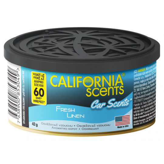 Luxusní, smyslné, trvanlivé a intenzivní vůně do auta California Scents jsou tu aby vám dokázaly, co znamená opravdu dlouhotrvající přijemná vůně ať už ve vašem voze, domácnosti nebo kanceláři. Každá plechová dóza Car Scents® obsahuje tři bloky lisovaného lnu napuštěného parfémem. Vzhledem k pevné konzistenci osvěžovače California Scents tak nehrozí únik tekutiny následovaný nepříjemným poleptáním plasotvého povrchu . V neposlední řadě je třeba zmínit, že tyto produkty California Scents jsou velmi šetrné k životnímu prostředí. Obal je tvořen recyklovatelným hliníkem a obsah (lněné bloky) je pak díky svému přírodnímu původu plně biologicky odbouratelný.