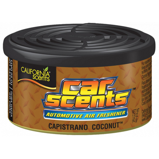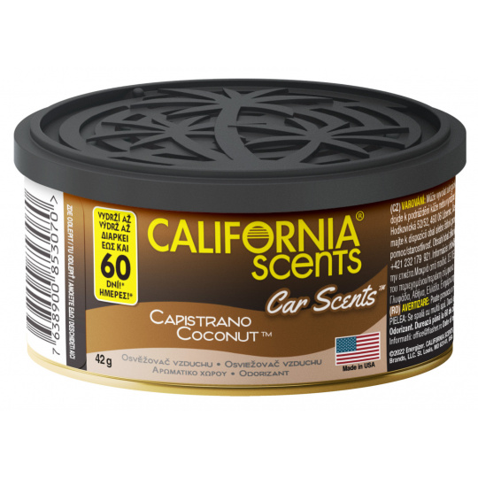 Luxusní, smyslné, trvanlivé a intenzivní vůně do auta California Scents jsou tu aby vám dokázaly, co znamená opravdu dlouhotrvající přijemná vůně ať už ve vašem voze, domácnosti nebo kanceláři. Každá plechová dóza Car Scents® obsahuje tři bloky lisovaného lnu napuštěného parfémem. Vzhledem k pevné konzistenci osvěžovače California Scents tak nehrozí únik tekutiny následovaný nepříjemným poleptáním plasotvého povrchu . V neposlední řadě je třeba zmínit, že tyto produkty California Scents jsou velmi šetrné k životnímu prostředí. Obal je tvořen recyklovatelným hliníkem a obsah (lněné bloky) je pak díky svému přírodnímu původu plně biologicky odbouratelný.