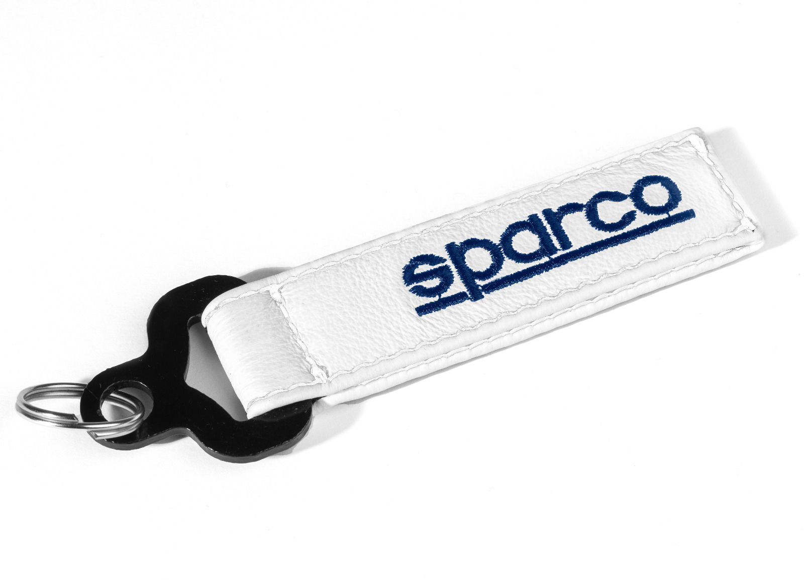 Kožená klíčenka Sparco je vyrobena z pravé kůže a zdobena logem Sparco na jedné straně s ikonickými pruhy Martini Racing a logem na straně druhé.