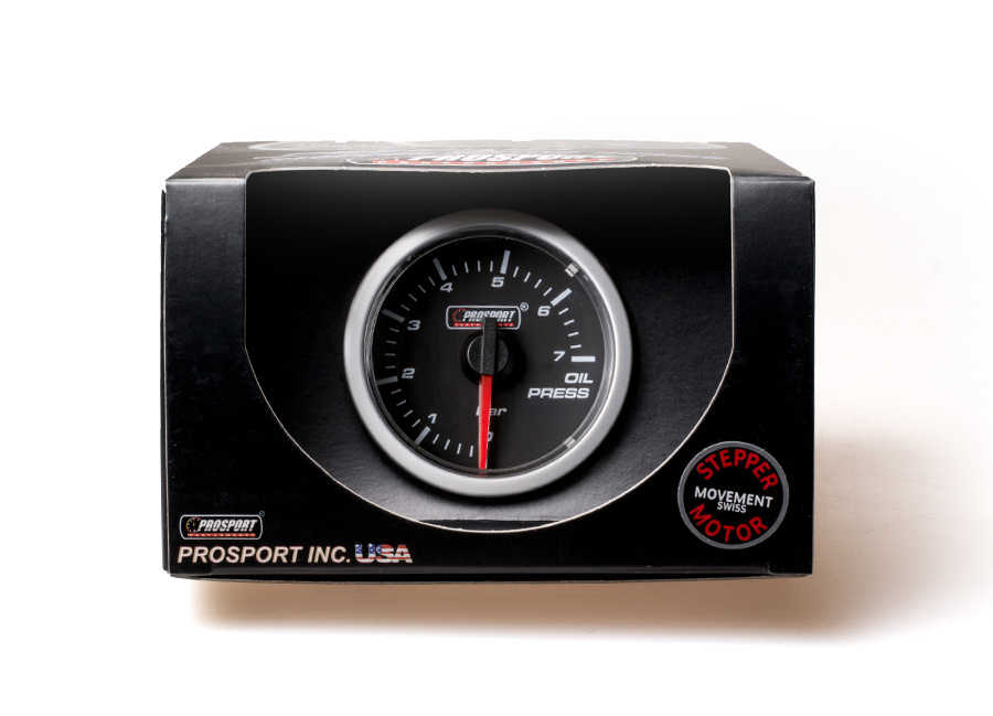 Přídavný ukazatel tlaku oleje Prosport Performance - elektronický s rozsahem 0 až 7 bar ze série Clear Lens. Díky čirému krycímu sklíčku je stupnice perfektně viditelná za všech okolností včetně ostrého světla. Vzhledově můžete budík sladit se zbytkem interiéru pomocí tří barev podsvícení (bílá, oranžová nebo červená). Ukazatel je vybaven krokovým motorkem, který zaručuje maximální přesnost. Při otočení klíčku proběhne u každého budíku uvítací ceremoniál, při kterém je prověřen pohyb ručky v celém rozsahu (Scan). Poté se budík ustálí ve Vámi zvoleném barevném nastavení.