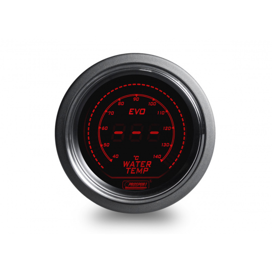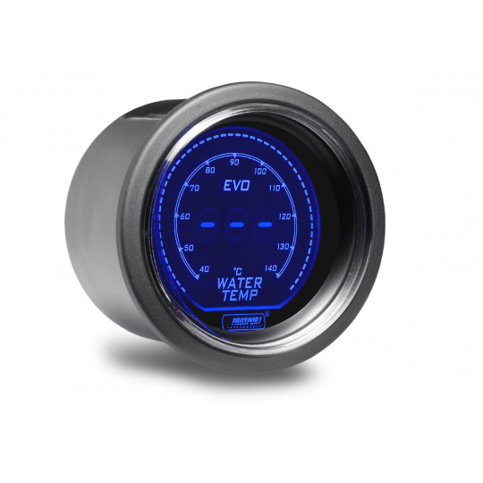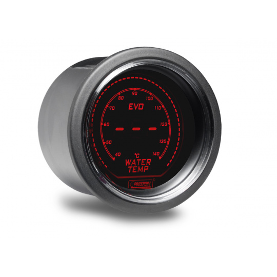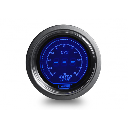 Přídavný ukazatel teploty vody Prosport Performance s rozsahem 40 až 140°C ze série EVO. Série EVO přináší futuristický vzhled do Vašeho interiéru.Podsvícení je možné přepínat mezi červeným a modrým a ideálně tak sladit vzhled budíku s interiérem vozu. Při otočení klíčku proběhne u každého budíku uvítací ceremoniál, při kterém je prověřen pohyb ručky v celém rozsahu (Scan). Poté se budík ustálí ve Vámi zvoleném barevném nastavení. Ve vypnutém stavu je displej budíku vypnutý a je viditelná pouze obvodová linka a logo Prosport Performance.