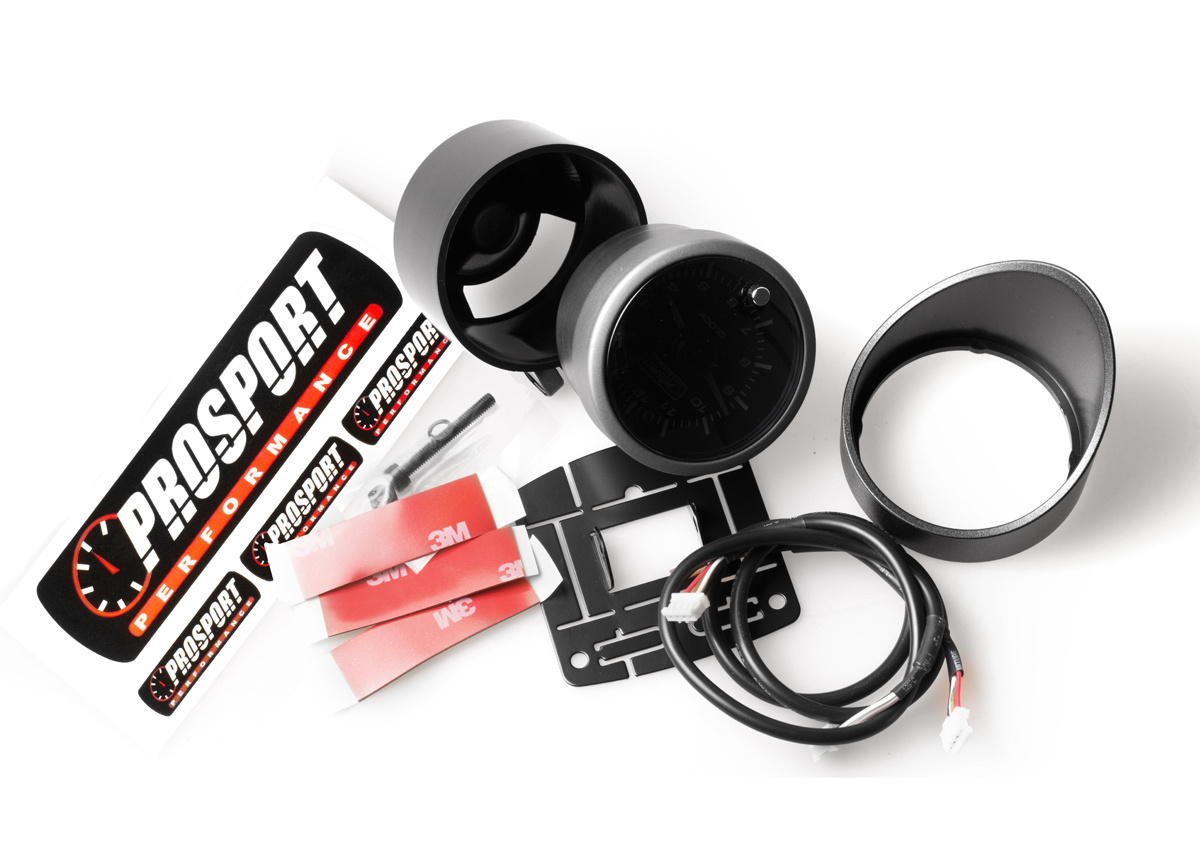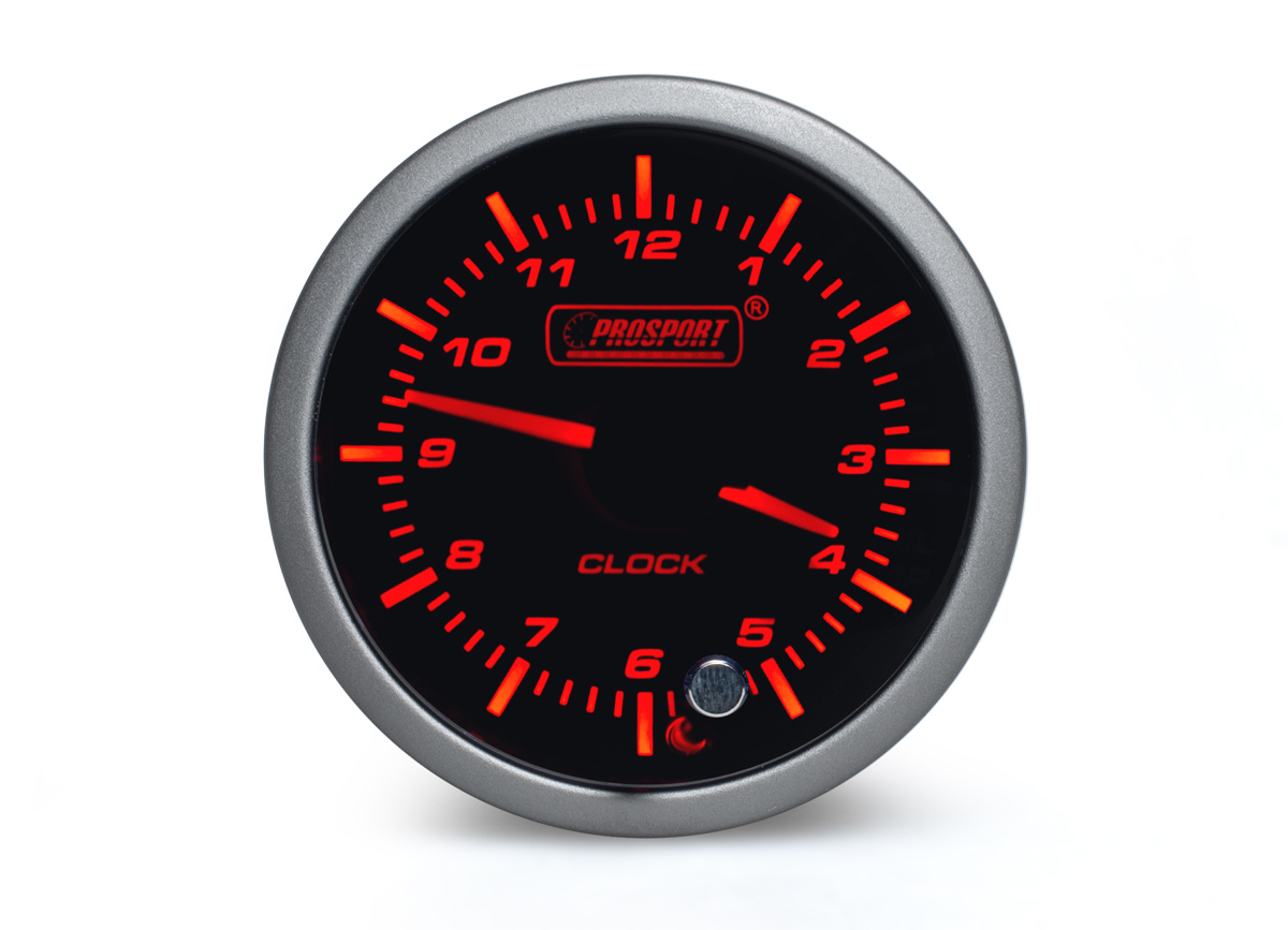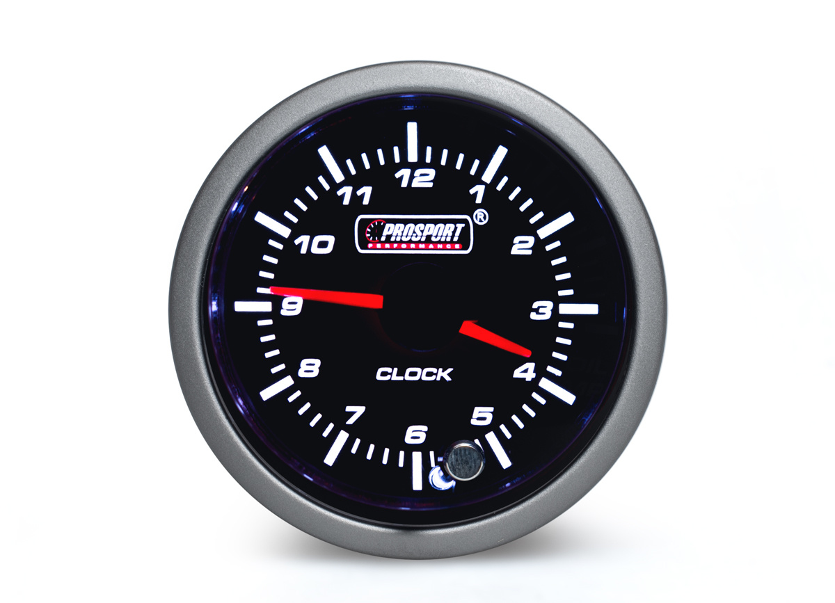 Přídavné analogové hodiny Prosport Performance ze série Premium. Podsvícení je možné přepínat mezi červeným a bílým a ideálně tak sladit vzhled budíku s interiérem vozu. Všechny budíky Prosport řady Premium umožňují propojení budíků vzájemným napájecím kabelem, který je součástí balení. Díky tomuto propojení je potřeba k budíkům přivézt pouze jediný napájecí kabel a budíky jsou pak napájeny vzájemně po propojení přibaleným kabelem.