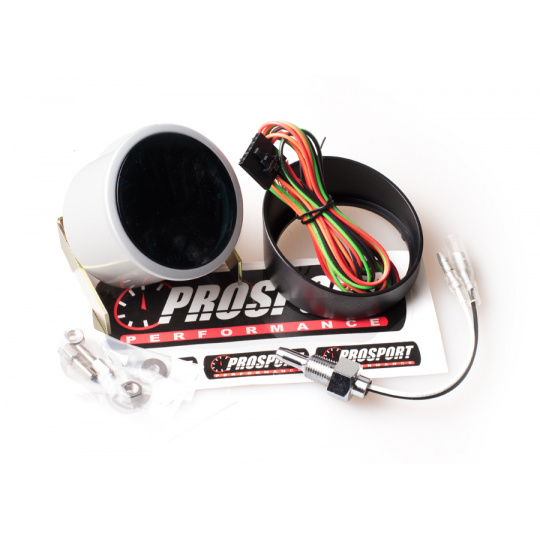 Přídavný ukazatel teploty oleje Prosport Performance ze série Smoke Lens. Ukazatel je vybaven krokovým motorkem, který zaručuje maximální přesnost. Budík má černý podklad podsvícený bílou diodou s červenou ručičkou. Při otočení klíčku proběhne u každého budíku uvítací ceremoniál, při kterém je prověřen pohyb ručky v celém rozsahu (Scan). Poté se budík ustálí ve Vámi zvoleném barevném nastavení.