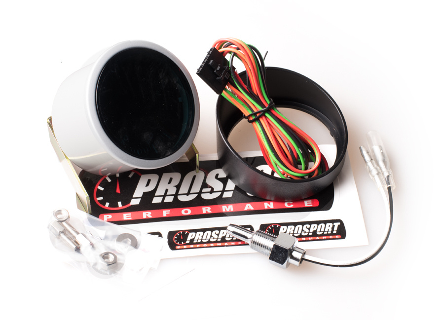 Přídavný ukazatel teploty oleje Prosport Performance ze série Smoke Lens. Ukazatel je vybaven krokovým motorkem, který zaručuje maximální přesnost. Budík má černý podklad podsvícený bílou diodou s červenou ručičkou. Při otočení klíčku proběhne u každého budíku uvítací ceremoniál, při kterém je prověřen pohyb ručky v celém rozsahu (Scan). Poté se budík ustálí ve Vámi zvoleném barevném nastavení.