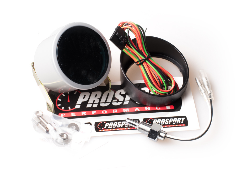 Přídavný ukazatel teploty vody Prosport Performance ze série Smoke Lens. Ukazatel je vybaven krokovým motorkem, který zaručuje maximální přesnost. Budík má černý podklad podsvícený bílou diodou s červenou ručičkou. Při otočení klíčku proběhne u každého budíku uvítací ceremoniál, při kterém je prověřen pohyb ručky v celém rozsahu (Scan). Poté se budík ustálí ve Vámi zvoleném barevném nastavení.