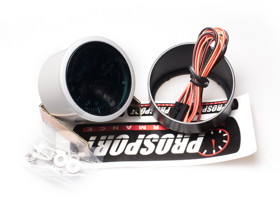 Přídavný ukazatel palubního napětí Prosport Performance ze série Smoke Lens. Ukazatel je vybaven krokovým motorkem, který zaručuje maximální přesnost. Budík má černý podklad podsvícený bílou diodou s červenou ručičkou. Při otočení klíčku proběhne u každého budíku uvítací ceremoniál, při kterém je prověřen pohyb ručky v celém rozsahu (Scan). Poté se budík ustálí ve Vámi zvoleném barevném nastavení.