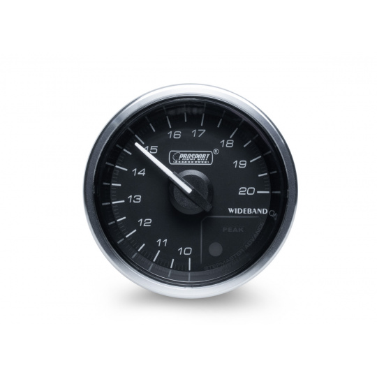 Přídavný ukazatel bohatosti směsi Prosport Performance ve verzi se širokopásmovou lambda sondou Bosch - elektronický s jemnou 270° stupnicí s měřeným rozsahem 10 až 20 ze série Supreme Series. Ukazatel je vybaven moderním krokovým motorkem Stepmaster Advance, který zaručuje maximální přesnost. Zároveň umožňuje nastavit špičkovou hodnotu, při jejímž dosažení se ukazatel zbarví do červena, rozsvítí varovnou diodu a ozve se zvukový signál.