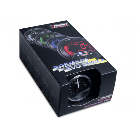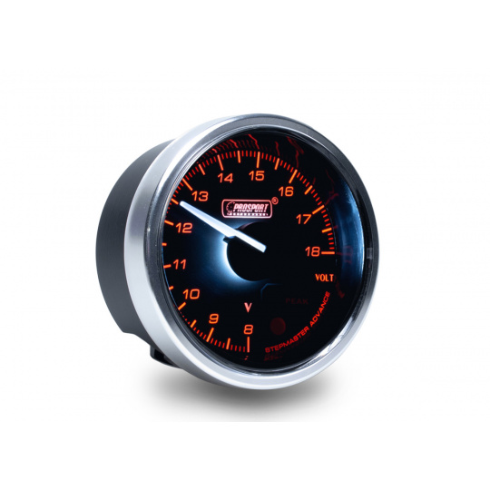 Přídavný ukazatel tlaku turba Prosport Performance - elektronický s jemnou 270° stupnicí s měřeným rozsahem 8 až 18 V ze série Supreme Series. Ukazatel je vybaven moderním krokovým motorkem Stepmaster Advance, který zaručuje maximální přesnost. Zároveň umožňuje nastavit špičkovou hodnotu, při jejímž dosažení se ukazatel zbarví do červena, rozsvítí varovnou diodu a ozve se zvukový signál.
