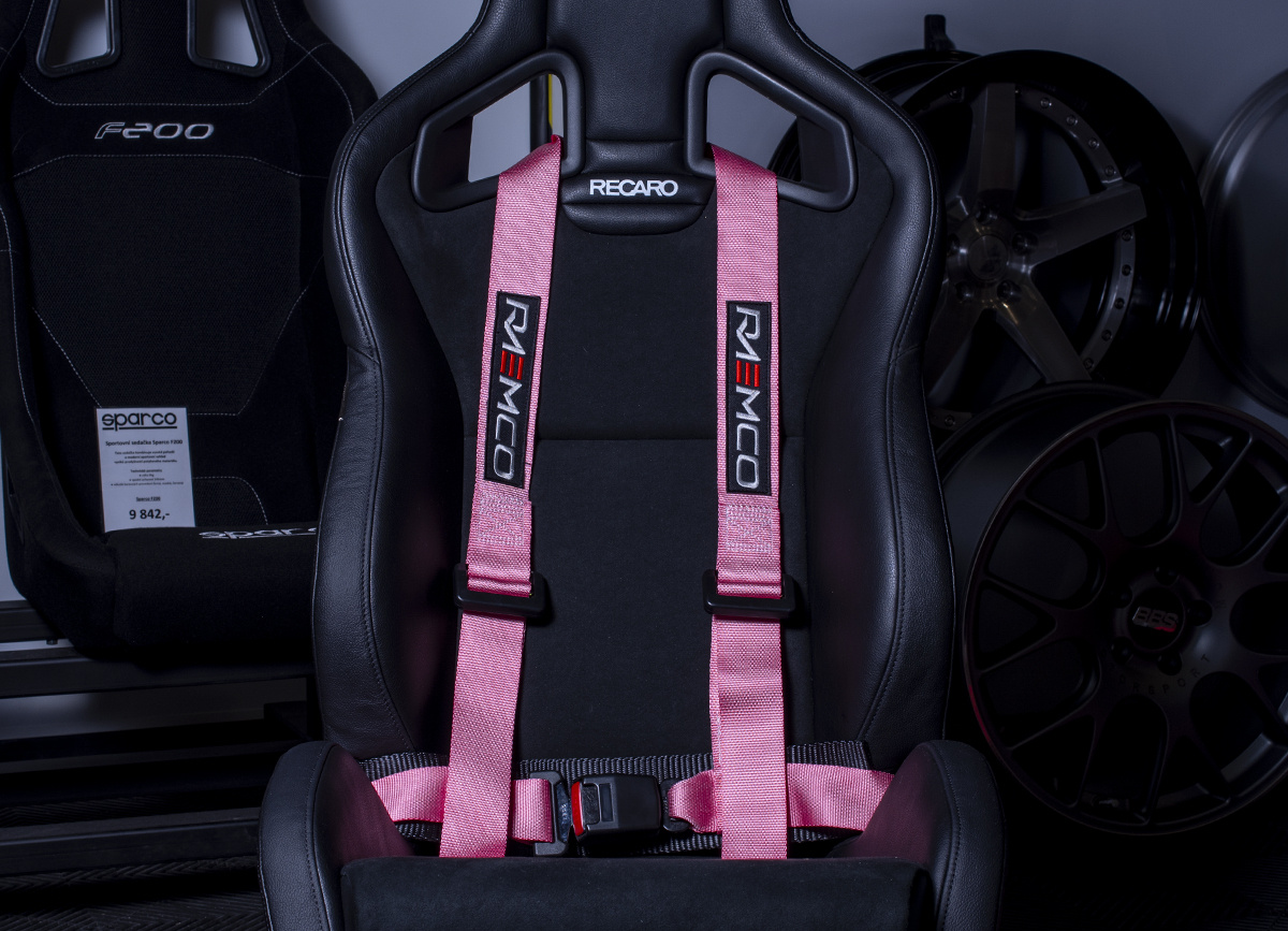 Raemco sportovní tříbodový bezpečnostní pás odpojitelný, barva: růžová