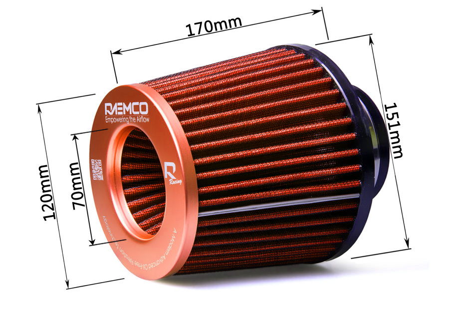 Sportovní filtry Raemco se vyznačují kvalitní konstrukcí kombinující atraktivní hliníkový vrchlík s potiskem a přesné vstupní hrdlo z uretanu, které je navíc tvarováno do tvaru trychtýře se směrováním do sání. Tento tvar zajišťuje nejsnazší proudění vzduchu bez ostrých hran a překážek. Dále je filtr vybaven protisměrným filtračním kónusem, který rovná proudění vzduchu směrem do sání motoru.